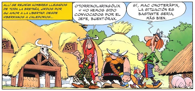 6⃣No parece coincidencia que los nombre de hibernianos y caledonios, Otorrinolaringólix y Mac Onoterápix, acaben en -ix, dando idea de su origen celta, no así como los britanos, que acaban en -ax, como Buentórax o Relax, o en -os, Zebigbos.
