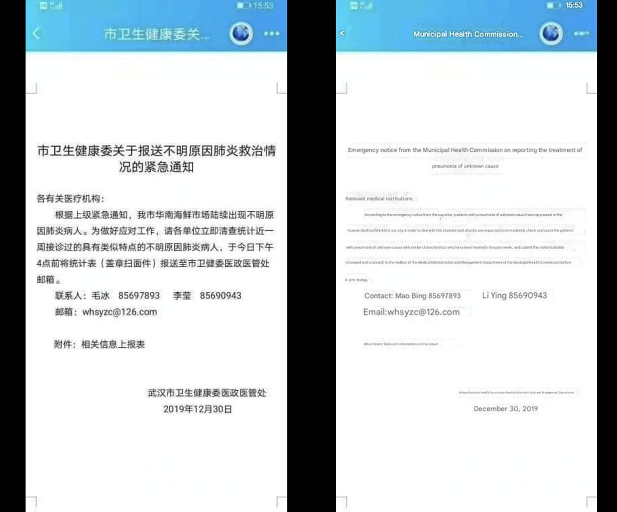 There’s a cluster of pneumonia cases of unknown etiology in Wuhan… 😱🇨🇳