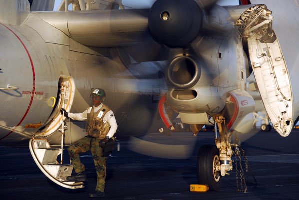 Normalmente los E-2 son los primeros aviones en ser catapultados pero Steeljaw 601 ha tenido problemas en un motor y las últimas comprobaciones han retrasado su despegue. Las falsas señales de averías motor son recurrentes.
