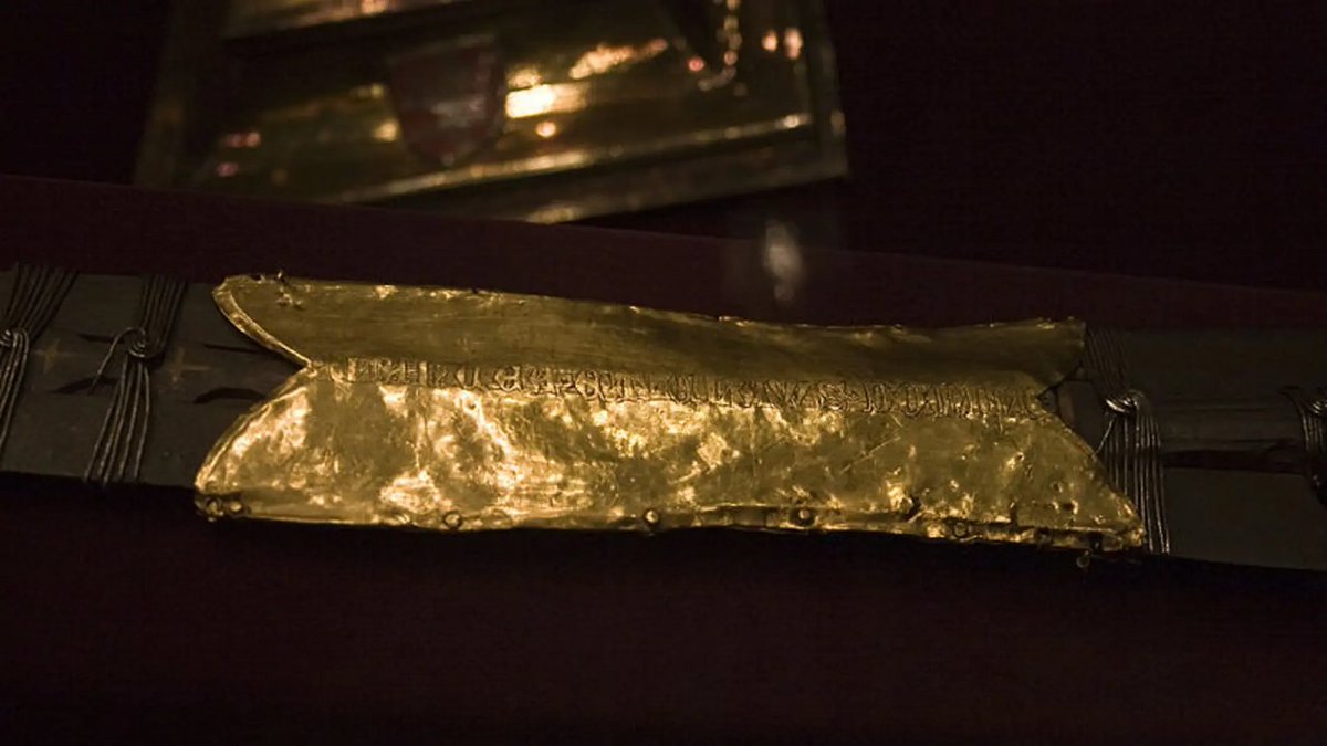 @JaviTannhauser @Cinedepatio @ElContraplano @Flipesci @KresalaZinema @DSotoOrtiz @raldarondo @RetoHistorico @gandalf_u @BarrocoOrgullo @red_historia @Blogdhistoria @itineratur @horrorlosers @historiacuyarte La que sale en #Indiana es la Lanza de #Viena o Lanza Hofburg (palacio donde está hoy en día). Fue depositada en la Catedral de #Nuremberg por el mismísimo Hitler que la usó en varios mítines. La inscripción de oro fue añadida en 1350 por Carlos IV de Alemania.