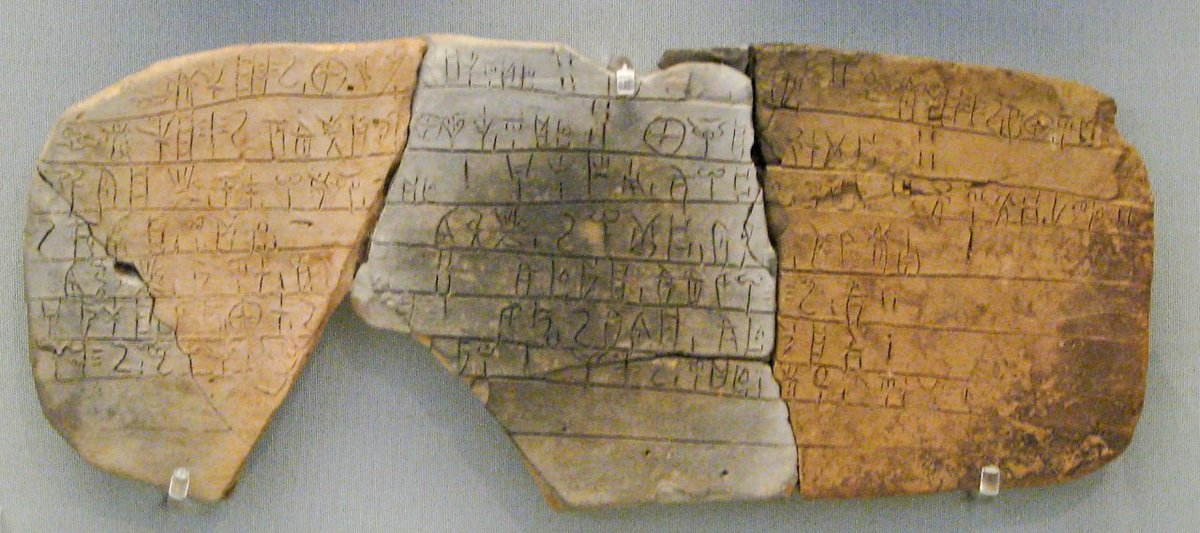 @JaviTannhauser @Cinedepatio @ElContraplano @Flipesci @KresalaZinema @DSotoOrtiz @raldarondo @RetoHistorico @gandalf_u @BarrocoOrgullo @red_historia @Blogdhistoria @itineratur @horrorlosers @historiacuyarte @ClioBiblioteca @FuegosdeVesta @meditantiguo @HdAnchiano @EstoEsArgos @xlagreciadezeus @museumsmoments @redhistoria @SdStendhal En la película, el Graphikos que les va a conducir al 2º fragmento, puede estar en Lineal B, una escritura utilizada en Creta en el II milenio a.C. usada para escribir en lengua micénica. Cómo pudo sobrevivir hasta el s. III a.C. es uno de los grandes misterios de la película.