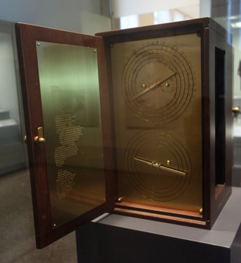 @JaviTannhauser @Cinedepatio @ElContraplano @Flipesci @KresalaZinema @DSotoOrtiz @raldarondo @RetoHistorico @gandalf_u @BarrocoOrgullo @red_historia @Blogdhistoria @itineratur @horrorlosers @historiacuyarte @ClioBiblioteca @FuegosdeVesta @meditantiguo @HdAnchiano @EstoEsArgos El Mecanismo de Anticitera, que se encuentra en el Museo Arqueológico de #Atenas, se encontró en un pecio bajo el mar. Tenía 30 engranajes, diales, escalas, ejes y punteros, y servía para hacer cálculos astronómicos y calendáricos.