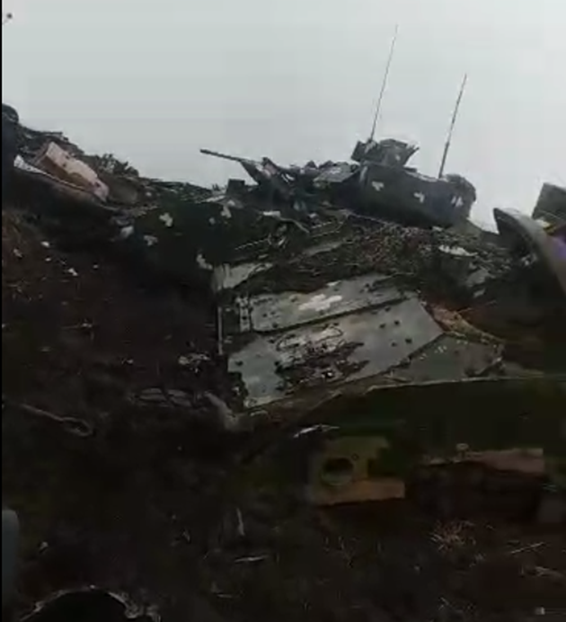 this is the Bradly that was hit on the commanders side with a mine and the crew got out and climbed on the other bradly and got out. what you dont know is that there is a lock that holds the front engine hatch down. the blast sheared the latch... its NOT a small latch.. and the… twitter.com/i/web/status/1…