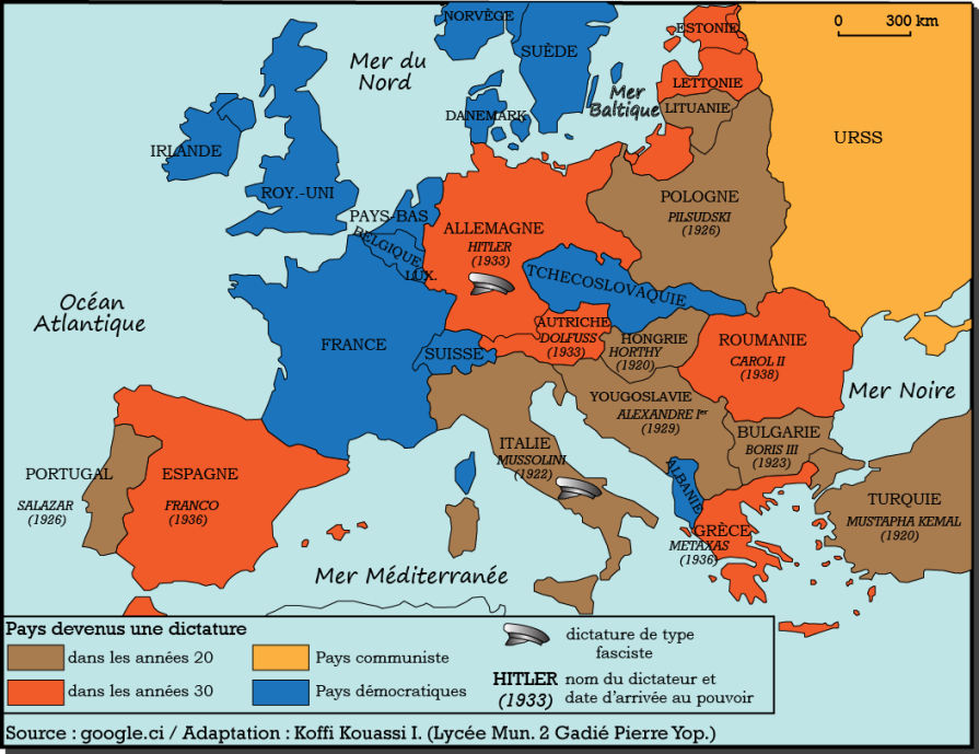Le fascisme (dont le nazisme est une branche) est alors pleinement installé en Europe. Philippe Burrin le définit comme un nationalisme totalitaire, au sens où il vise le contrôle total des masses, prônant la force, l’inégalité, le militarisme et la fidélité absolue au Chef. 6/25