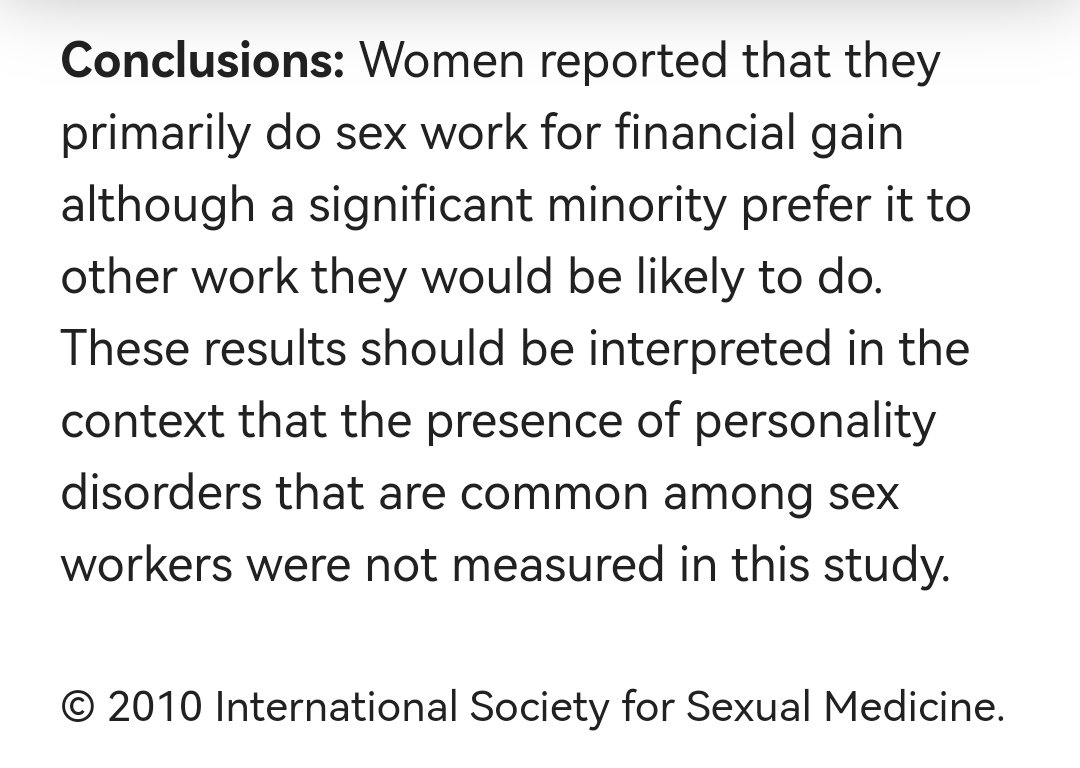 En fin, ya hablaré más extensamente de Melissa Farley en otro hilo y os mostraré por qué muchas de sus praxis académicas son fraudulentas. Por el momento, llevad MUCHO cuidado cuando os planten un estudio de Farley.
