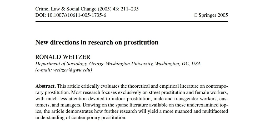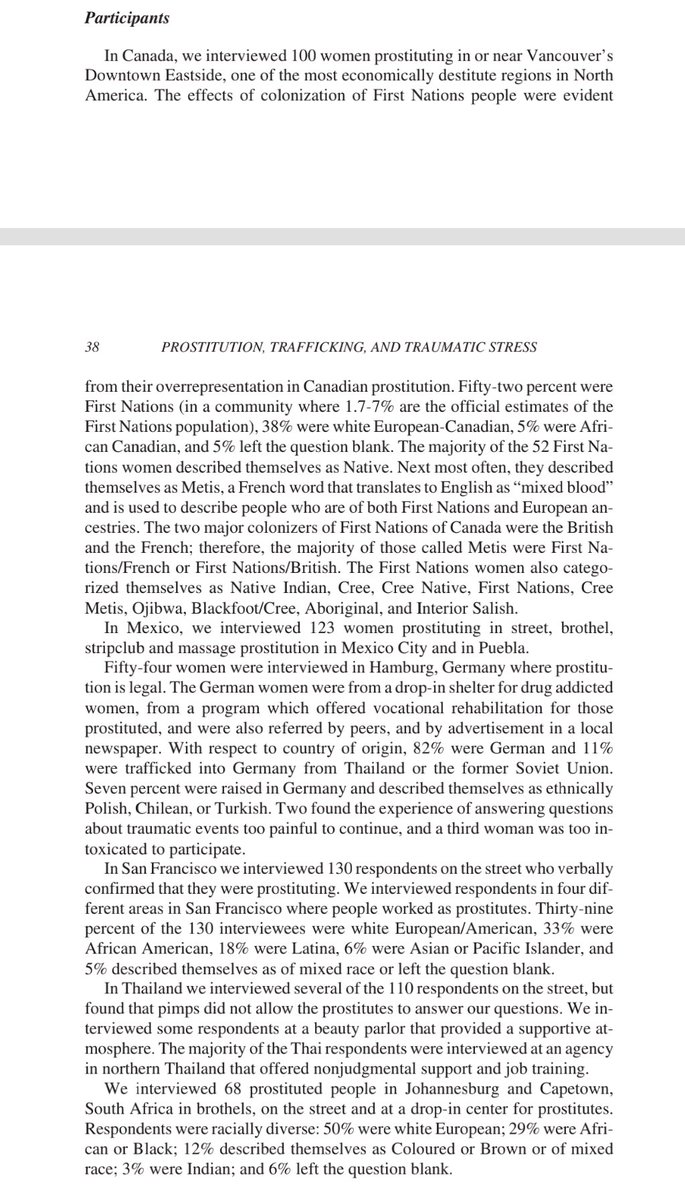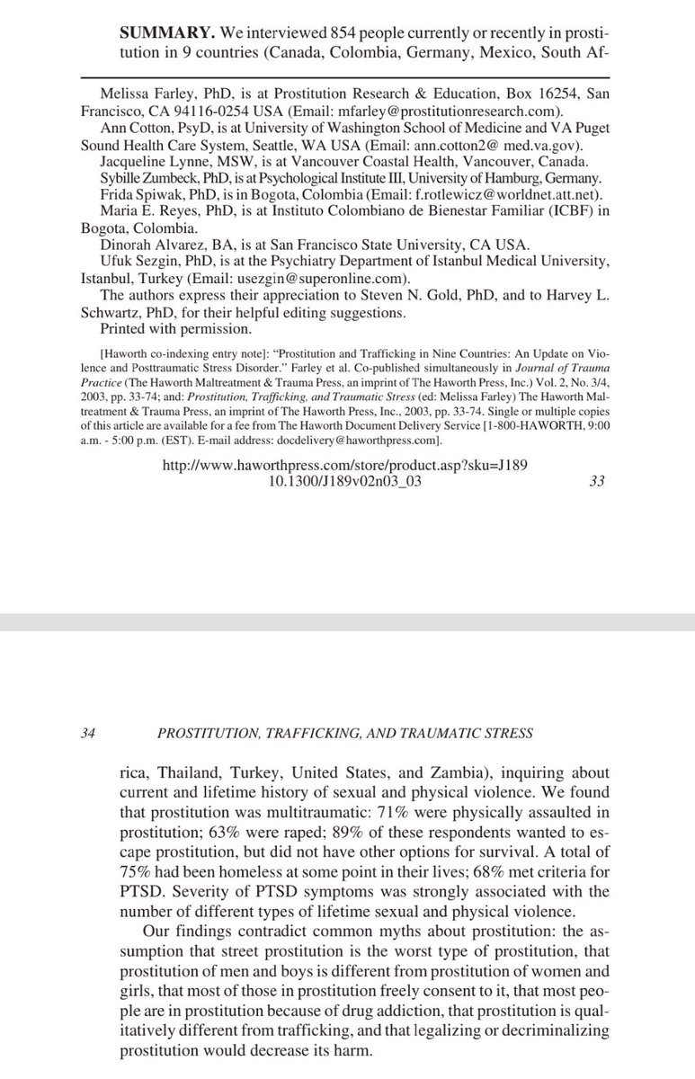 Enlace al estudio sobre TEPT en prostitutas y víctimas de tráfico sexual (que mezclar ambas categorías también es otro error del estudio, por cierto): prostitutionresearch.com/pdf/Prostituti…