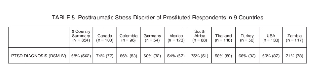 El estudio en cuestión es un estudio que analiza la presencia del TEPT en prostitutas de nueve países TOTALMENTE DISTINTOS ENTRE SÍ, lo cual implica condiciones distintas. En este estudio participó Melissa Farley (académica que tendrá su propio hilo aquí debido a sus fraudes).