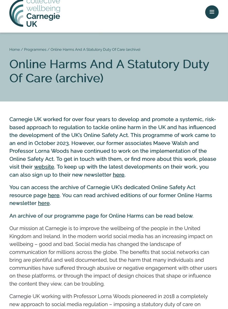 “Carnegie UK working with Professor Lorna Woods pioneered in 2018 a completely new approach to social media regulation – imposing a statutory duty of care on platform companies and enforcing that with a powerful regulator independent of government.”