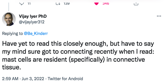 3/ @vijayiyer312 has mentioned in a tweet the association of mast cells with connective tissue. This is the kind of detective work that we should be doing. We need the help of medical experts AND the appropriate technology to connect the pieces ASAP.