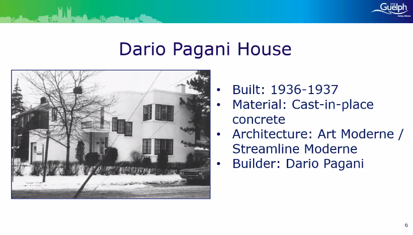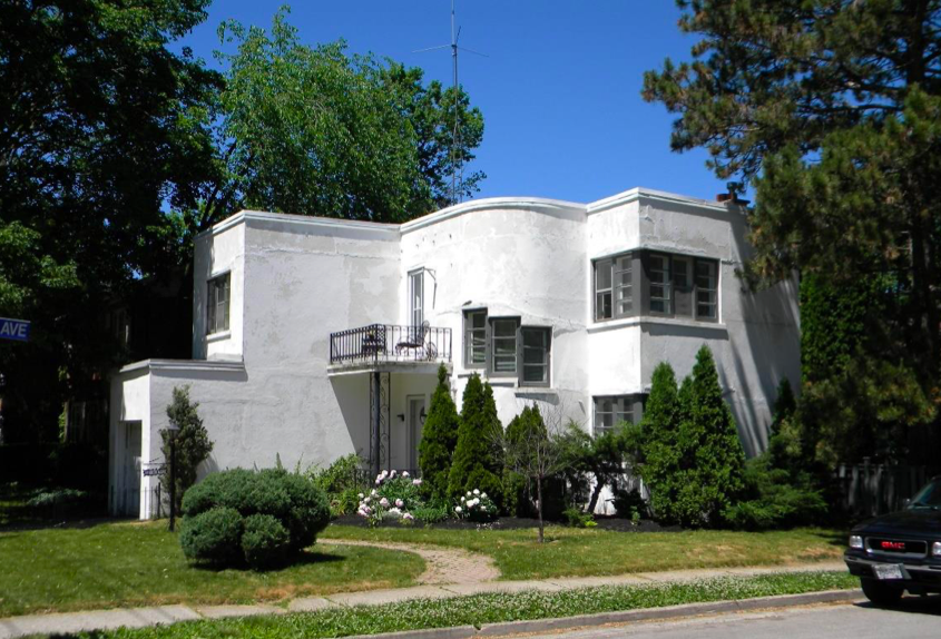 Art Moderne architecture is rare in Ontario, and more visible in places like Florida and San Francisco. Mallon notes that this may be the *only* example of Art Moderne in Guelph, and one of the few examples in all of Ontario.