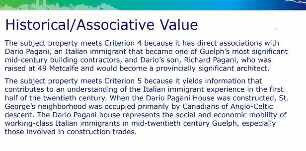 Next, 49 Metcalfe Street: Cultural Heritage Evaluation Report aka: the Dario Pagani House. You might recognize it: