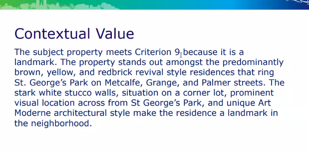 Mallon says the house meets five out of nine criteria, especially the landmark one, which is a rarity for a residential property, but it sticks out like a sore thumb.