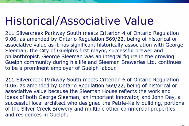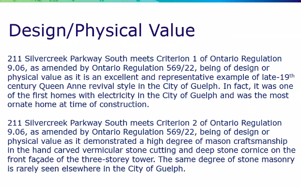 Lastly, 211 Silvercreek Parkway: Cultural Heritage Evaluation Report. aka: The Manor. aka: The Sleeman House.