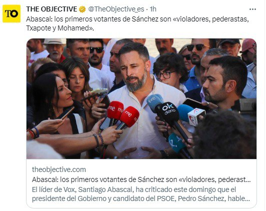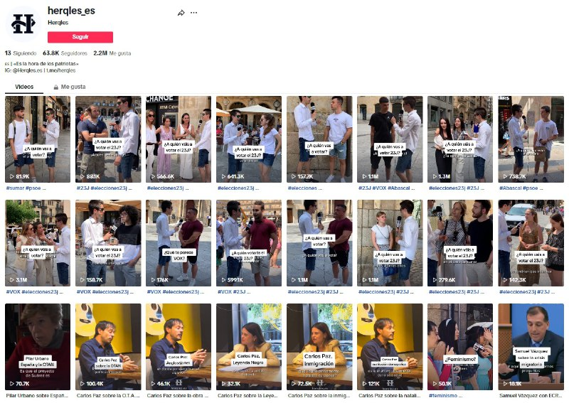 Si te metes en su tiktok puedes ver que todas las entrevistas seleccionadas ultimamente es gente diciendo que VOX es lo mejor y van a votarle, Tamará Falcó o Agustín Laje, del entorno de Hazte Oír, contra el aborto y policías de VOX vinculando inmigración con delincuencia.
