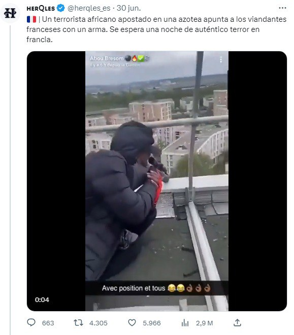 Publicar un vídeo de otra persona que no se parece en nada a Nahel, y dejar caer que que traficaba con drogas.
