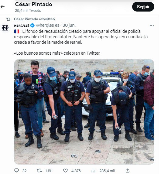 Y esto solo son algunos de los bulos para generar odio vinculado a las revueltas francesas, esa es su misión y sin ningún gasto en redacción ni periodistas tienen más impacto y difusión que cualquier noticia de El País o cualquier medio con cientos de periodistas.