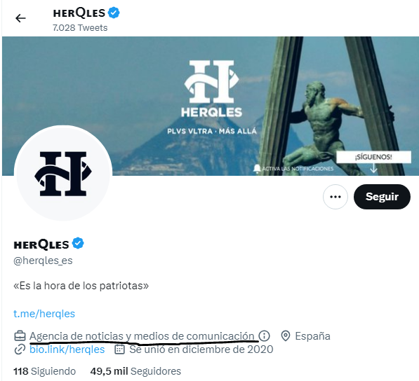 Para ver el disparate de como está construido su METAVERSO fijémosnos en el medio de reciente creación que publicó el vídeo en origen, HerQles, que es difundido por miles de bots en redes y tiene el check azul en twitter haciéndose pasar por un medio serio. Veamos a que se dedica