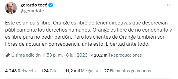 Defiendo la libertad de Orange de no despedir a una empleada por sus opiniones, como de quienes la critican para hacer boikot y darse debaja como dice aquí @gerardotc. Lo que no defiendo es la mentira impune, sobre todo cuando es para atacar la democracia y los derechos humanos.