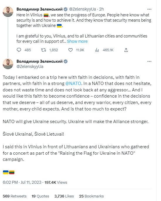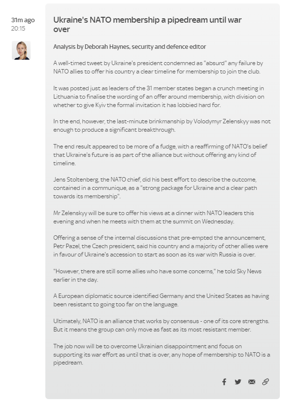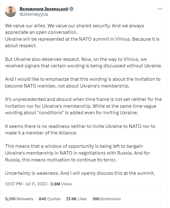 The Ukraine President @ZelenskyyUa was apparently not that happy with the announcement - in particular the lack of a clear timeline to membership. And said so in near real time. He's since tweeted quite a lot more.
