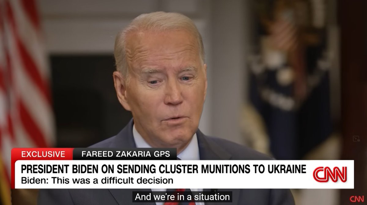 @jaketapper @France24_en @FareedZakaria @JoeBiden On the Cluster Bomblet Munitions issue, Biden says while reluctant to agree to the shipment of these weapons, he cites the lack of munitions as being the reason that he agreed after consultations to allowing the cluster munition shells (which he says have a low failure rate) to… https://t.co/JIF8TV5r2xtwitter.com/i/web/status/1…