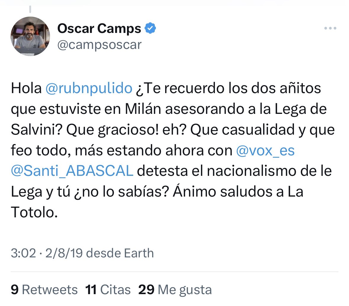 Hace cuatro años se lo hice saber al fundador de Open Arms.