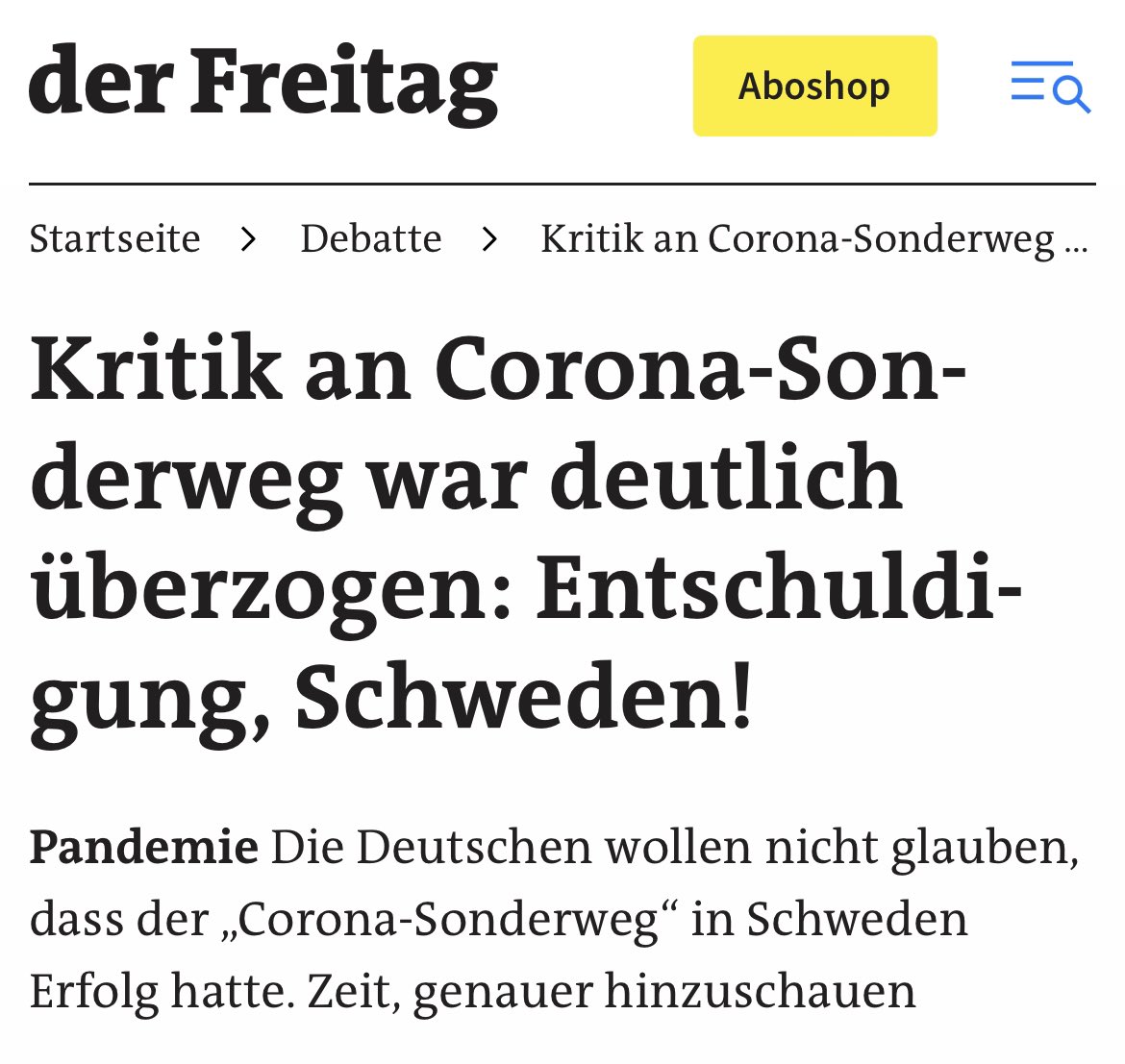 1/ „#Tegnell hat außerhalb seines Landes einen katastrophalen Ruf. Dabei heißt das Land, das #EU-weit statistisch die geringste #Covid-#Übersterblichkeit ausweist - richtig: Schweden. Ist Ihnen das geläufig, sind Sie schon fast der Schwurbelei verdächtig. Stutzen Sie hingegen …