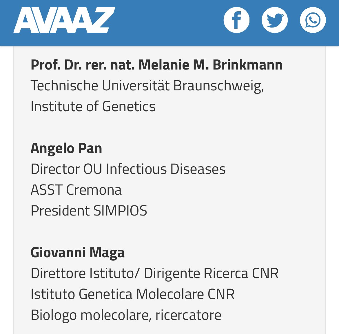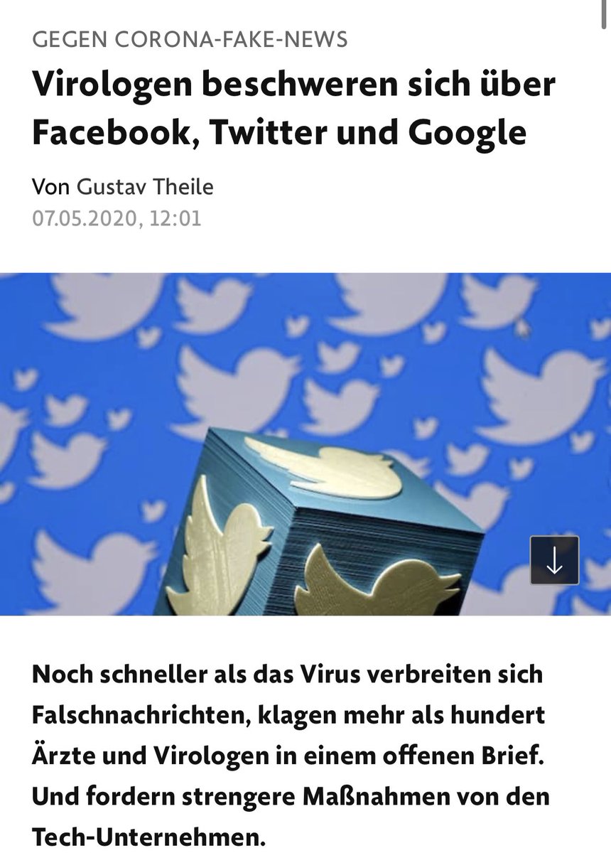 „Virologen & Ärzte aus aller Welt fordern die Technologie-Unternehmen Facebook, Twitter & Google deshalb nun dazu auf, entschiedener gg. die Verbreitung von Falschinformationen vorzugehen: Sie sollten ‚sofort u. systematisch‘ …