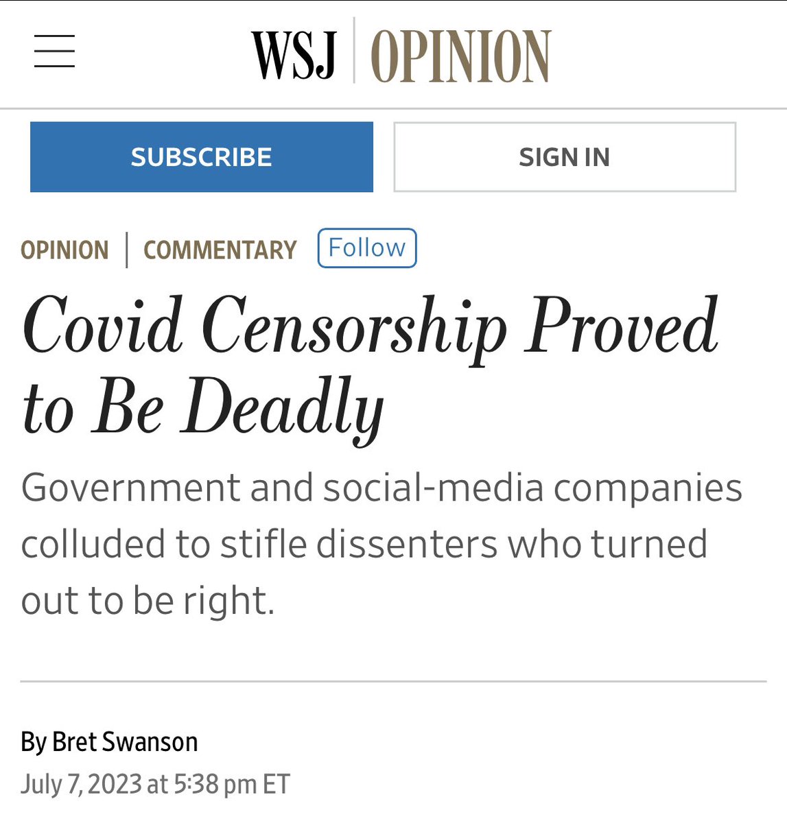 8/ Wie zuvor schon erwähnt, schreibt das WSJ in einem aktuellen Meinungsbeitrag über die vielfach praktizierte digitale Zensur von Beiträgen zu #Covid19: