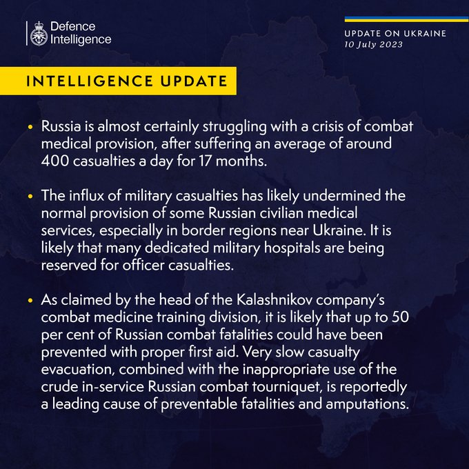 It was nice to see the Institute for the Study of War admit on 10 July 2023 that the bloody obvious reality of the dysfunctional, Napoleonic era, Russian medical evacuation and care system was...