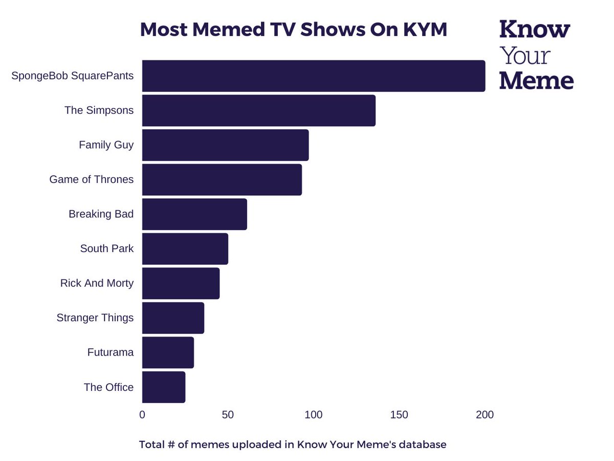 (3/6) Perhaps unsurprisingly, SpongeBob SquarePants far outpaced the competition for the "Most Memed TV Shows" according to our findings: