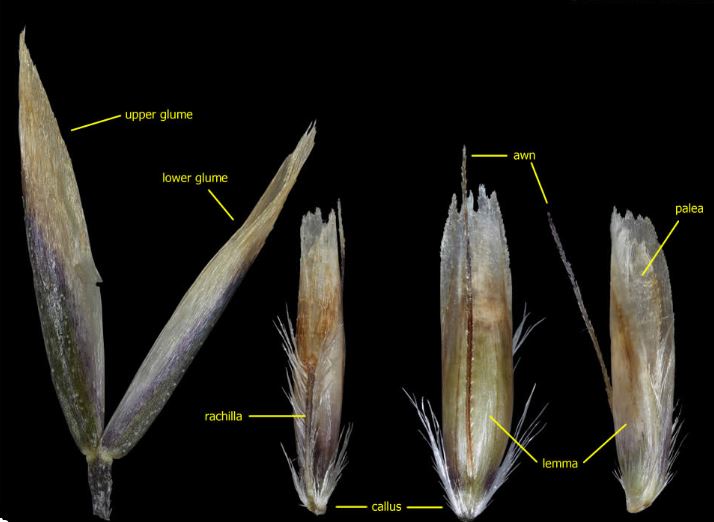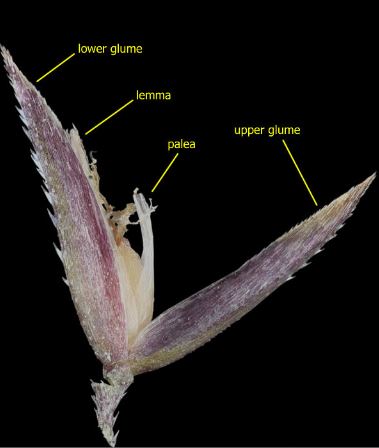 Carefully open up the glumes and look inside. You will see that there is just one perfectly bisexual floret, so we need to be in Key F (Stace, p. 1030). The lemma awn is sub-terminal and the palea is thin and transparent.