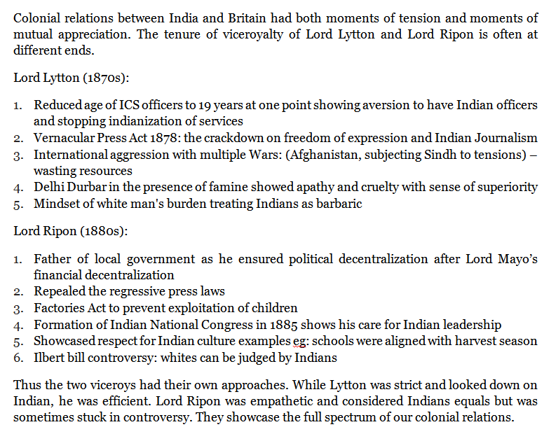 The viceroyalty of Lord Lytton and Lord Ripon was marked by the full display of colonial relation between India and Britain. Elucidate.