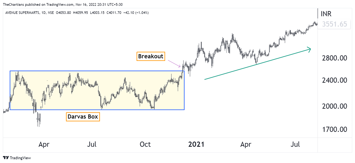 After breaking this range upside, DMart price rallied from 2500 to 3200+ (Rally of 28% in 3 months).