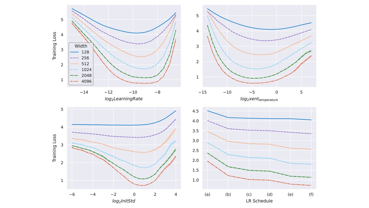 2/ The idea is actually really simple: in a special parametrization introduced in arxiv.org/abs/2011.14522 called µP, narrow and wide neural networks share the same set of optimal hyperparameters. This works even as width -> ∞.