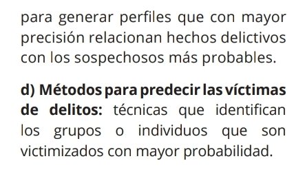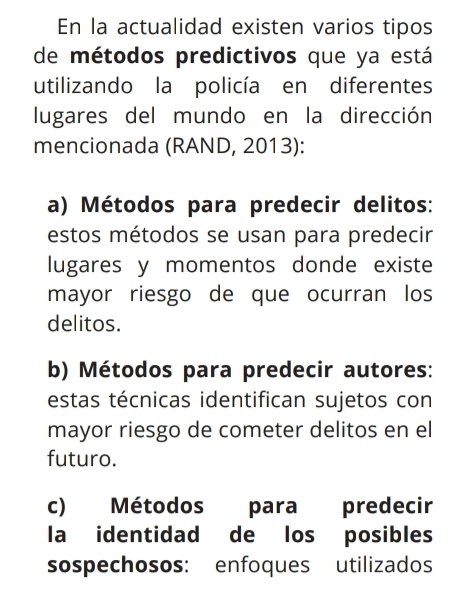 Las técnicas predictivas buscarían predecir en la medida de lo posible la comisión de futuros delitos en base a estos factores (pese a que no podamos asegurar al 100% que se va a cometer un delito por mucho que concurran todas estas características).