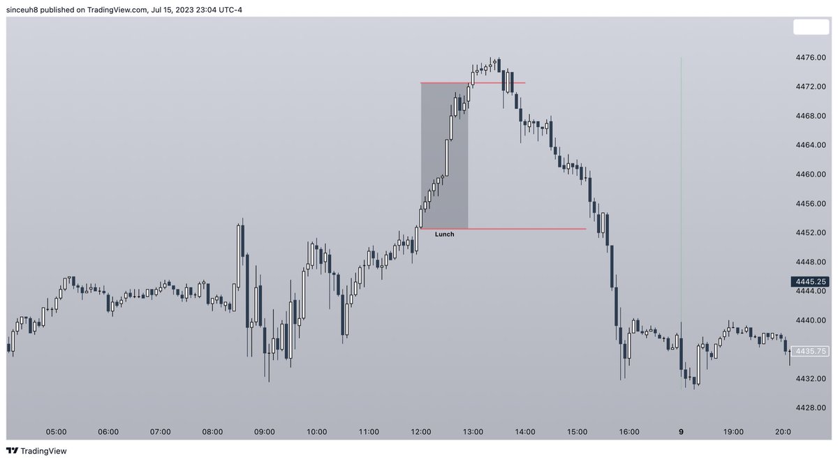 The lunch hour range offers valuable insights into what to expect during the afternoon session. While that's a topic of its own, let's currently focus on the highs and lows formed during this period