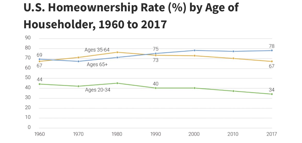For under-35, home ownership levels going back 40 years has never reached 50%.