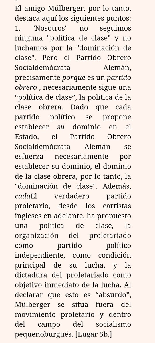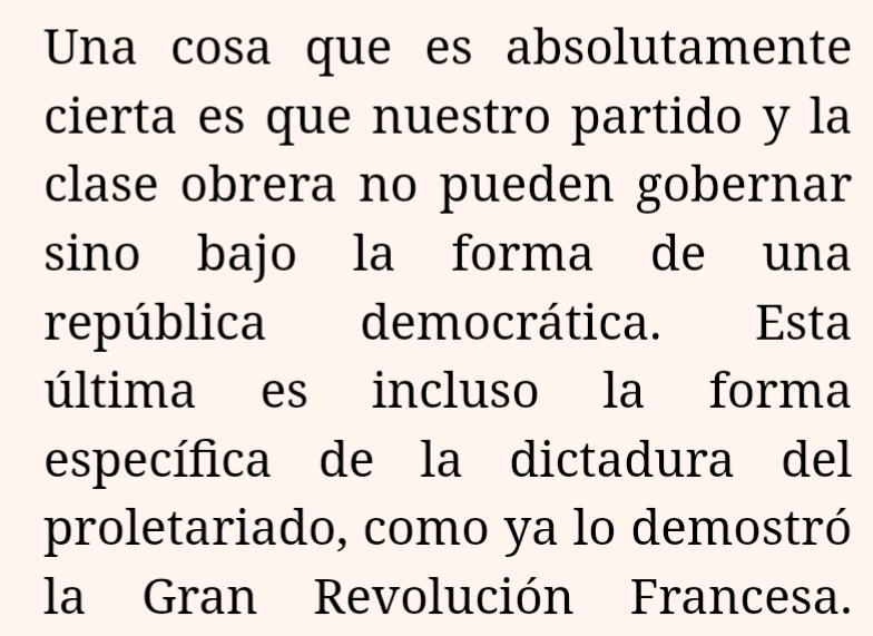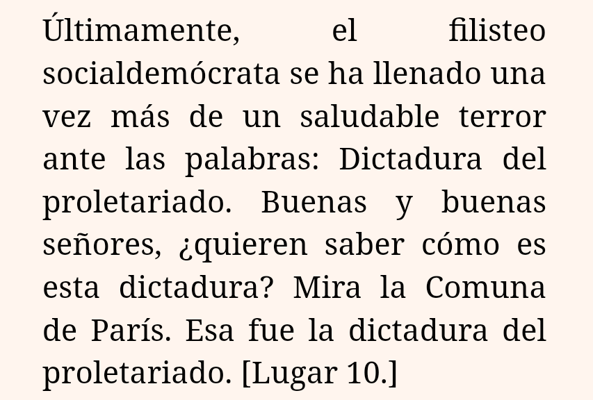 ...se destaca es la suposición obvia de Engels de que “dictadura del proletariado” no tiene un significado especial más que la toma del poder en el estado por parte del movimiento obrero socialista.