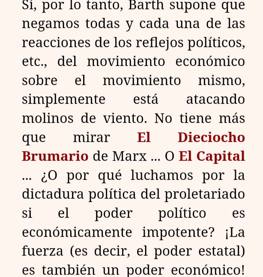 Luego sigue una crítica a “la creencia supersticiosa en el estado” típica de Alemania, y la necesidad de “tirar toda la madera del estado al basurero”. Luego el último párrafo: