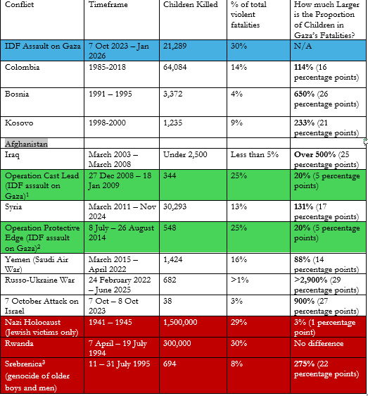 3/15 As you can see from this table (citations available upon request), the proportion of children killed by the IDF is overwhelmingly higher than any military or militant group in any other war since the Rwandan Genocide.