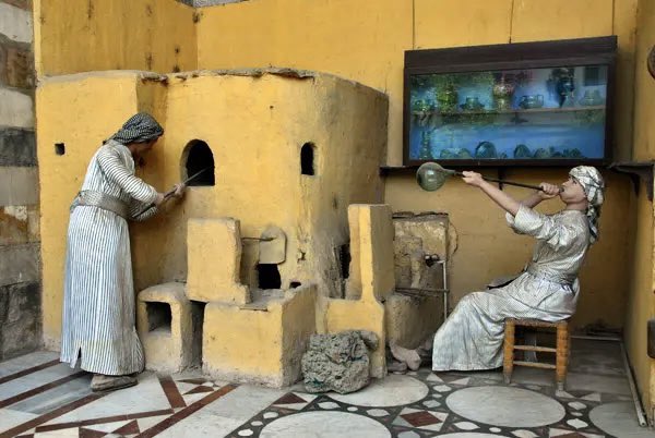 1/ Glassblowing was invented by Syrian craftsmen in the area of Sidon, Aleppo, Hama, and Palmyra in the 1st century BC, where blown vessels for everyday and luxury use were produced commercially, and exported to all parts of the Roman Empire