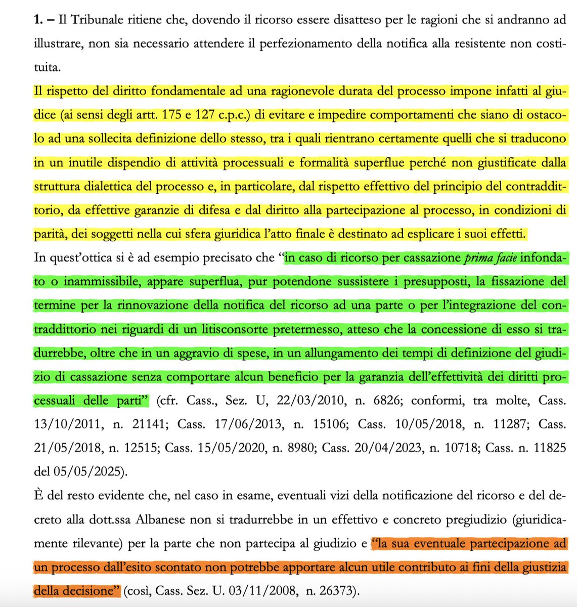 3/12 🏃♂️ Colpo di scena: il Tribunale rigetta subito il ricorso, senza attendere la prova della notifica alla controparte. Motivo? Il principio di economia processuale e di ragionevole durata: se il ricorso appare prima facie infondato, attendere sarebbe inutile. #diritto