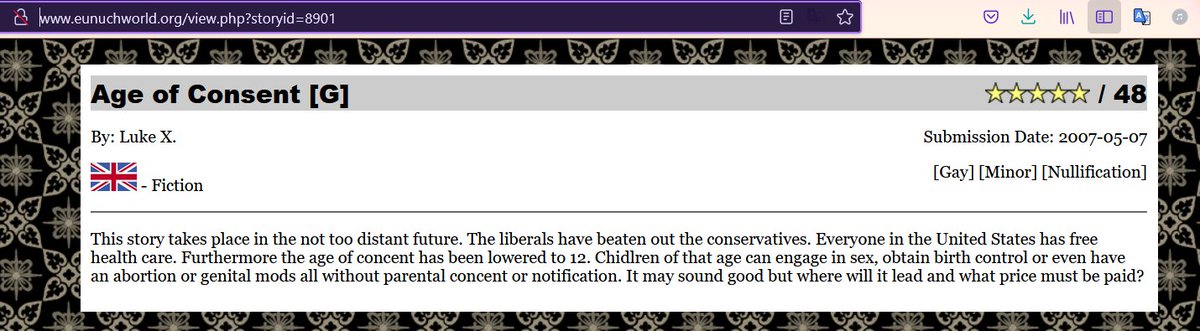 Many, nearly half, of the stories in the Eunuch Archive feature themes involving the rape, castration, torture, and killing of children.… https://t.co/41FzKLsXWotwitter.com/i/web/status/1…