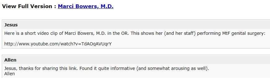"Jesus" aka Tom Johnson uploaded a video of WPATH president Marci Bowers performing "MTF" genital surgery as pornography.