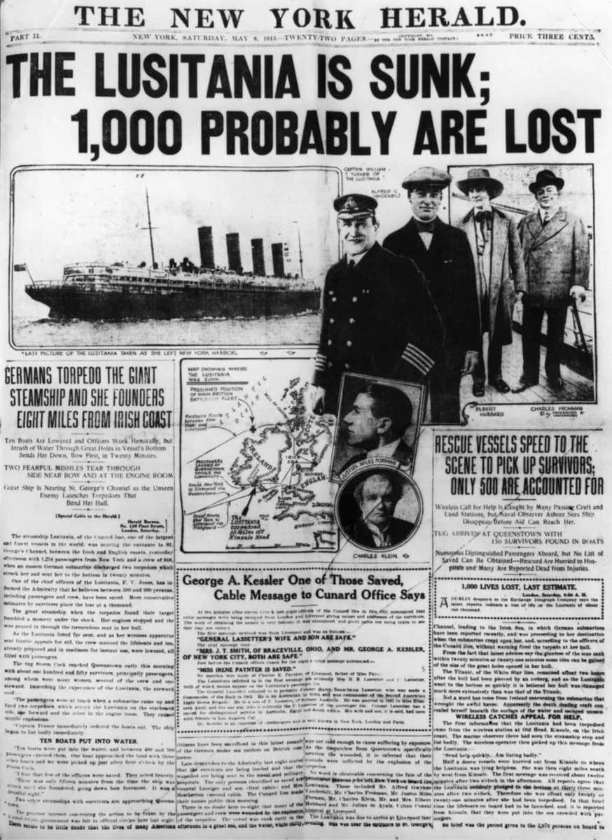 2/ Curiously, Pelley's rightward, antisemitic turn was triggered by his brief espionage exp. Thru the early 1900s, lil Pelley was a theocratic social reformer & newspaper careerist (his hero was Elbert Hubbard, founder of Roycroft community & utopian socialist—☠️ on Lusitania)