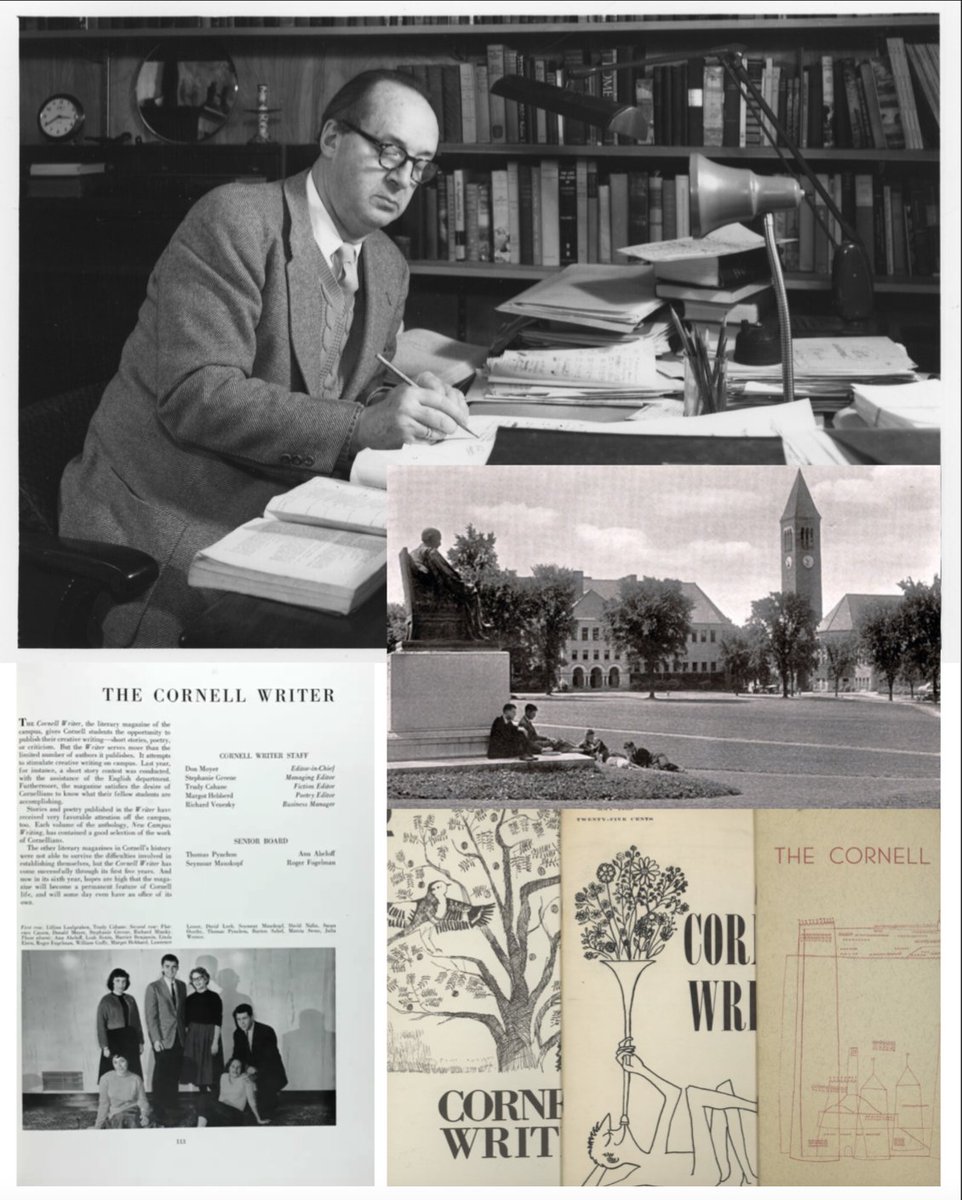 2/ From '57 - '59, Pynchon—recently returned from service in the Navy & having traded an engineering physics major in for the English dep't—attends Vladimir Nabokov’s Russian lit lectures at Cornell. Nabokov’s wife Vera would later recall TP’s distinctive handwriting