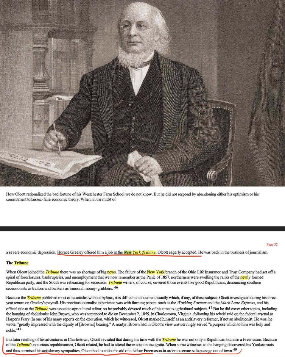 2/ Prior to the Civil War, Henry Steel Olcott was a correspondent & agricultural reporter at Horace Greeley's New York Tribune, where he worked w/ Charles Dana—who later became Assistant Assassintint Secretary under Edwin Stanton in the War Department.