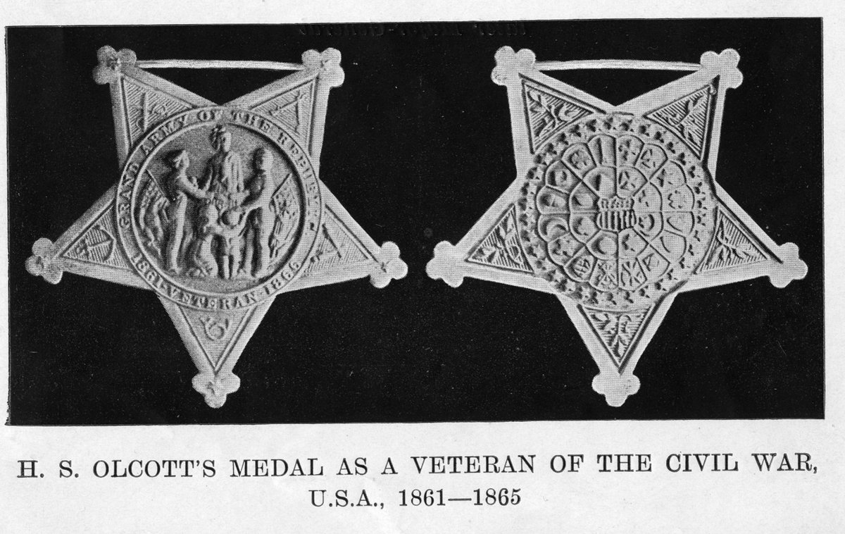 3/ Olcott was present at the execution of John Brown, purportedly as a correspondent for the Tribune. Guess who else was there? John Wilkes Booth, who snuck in disguised as a soldier. Once war broke out, Olcott enlisted as a signals officer w/ the Union, but soon caught dysentery