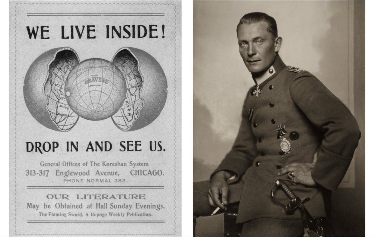 2/ Bender & Göring were both fighter pilot aces. Bender was shot out of the sky in France & imprisoned in a POW camp, where he found a copy of self-proclaimed messiah Koresh Reed Teed’s magazine in a stack of discarded books. Bender was entranced by Teed’s “Cellular Cosmogony”
