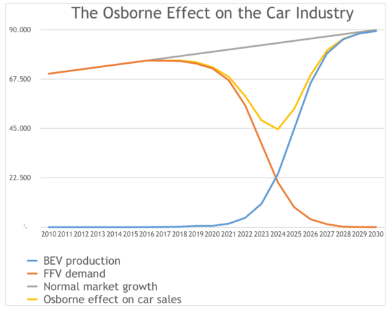 Das ganze wird zudem noch durch den Osborne-Effekt verstärkt: Die meisten wollen ein Elektroauto kaufen das wegen des Hochlaufs noch nicht lieferbar ist. Also wird auch kein Verbrenner verkauft, sondern gewartet. Image